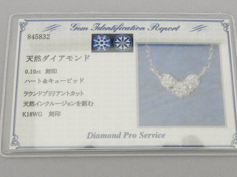 石:天然ダイアモンド0.10CT サイズ:約0.4センチ×0.6センチ チェーン:18金ホワイトゴールド 約40センチ