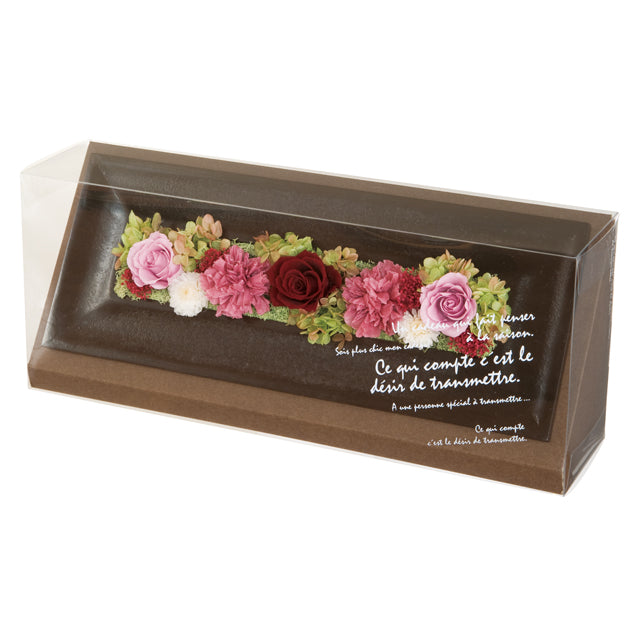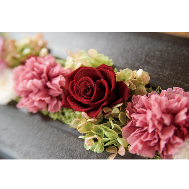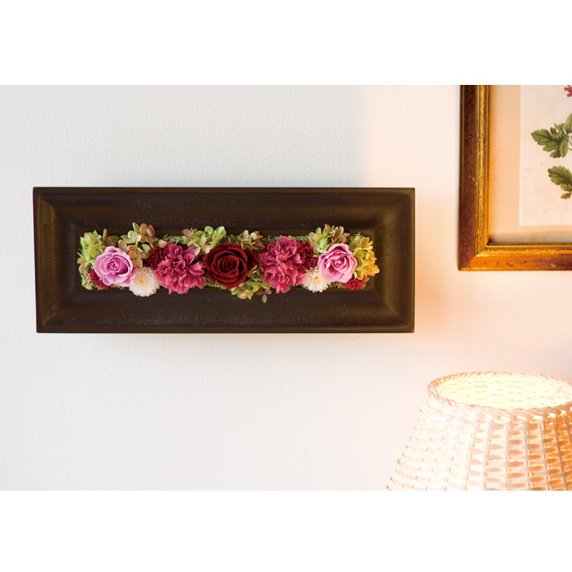◆ウッドフレームは油性塗料を使用しておりますので、プリザーブドフラワーが直接触れると使用している液が反応しウッドフレームが溶ける恐れがございます。取り扱いには十分ご注意ください。