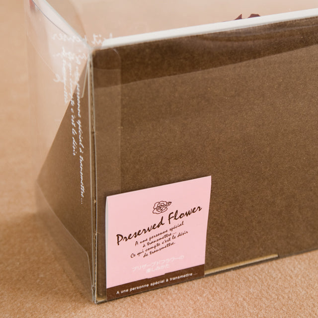 「プリザーブ」 (preserve) とは英語で「保存する」の意味で、プリザーブドフラワーは美しい姿で長時間保存することが出来るように専用の溶液を用いて加工された花のことをいいます。水やりなどの毎日のお手入れが必要なく気軽に飾って楽しめるので、相手に気を遣わせない贈り物として最適です。