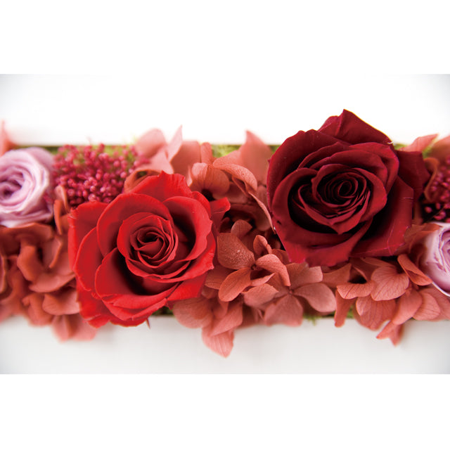「プリザーブ」 (preserve) とは英語で「保存する」の意味で、プリザーブドフラワーは美しい姿で長時間保存することが出来るように専用の溶液を用いて加工された花のことをいいます。水やりなどの毎日のお手入れが必要なく気軽に飾って楽しめるので、相手に気を遣わせない贈り物として最適です。