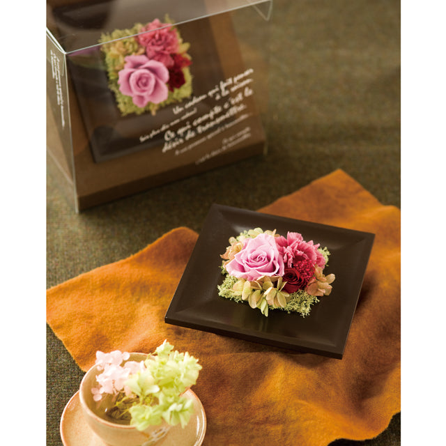 「プリザーブ」 (preserve) とは英語で「保存する」の意味で、プリザーブドフラワーは美しい姿で長時間保存することが出来るように専用の溶液を用いて加工された花のことをいいます。水やりなどの毎日のお手入れが必要なく気軽に飾って楽しめるので、相手に気を遣わせない贈り物として最適です。