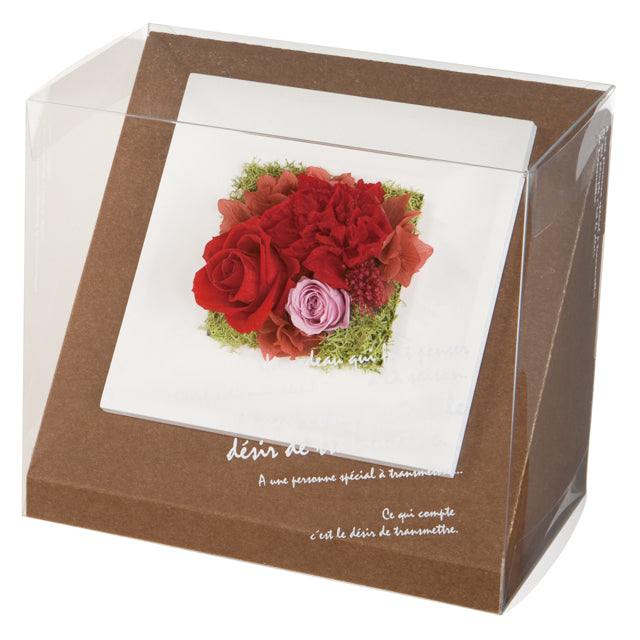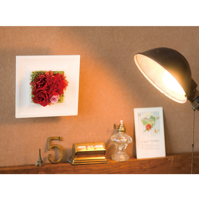 ◆ウッドフレームは油性塗料を使用しておりますので、プリザーブドフラワーが直接触れると使用している液が反応しウッドフレームが溶ける恐れがございます。取り扱いには十分ご注意ください。
