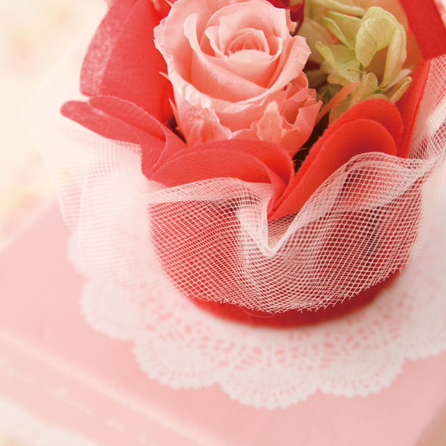 「プリザーブ」 (preserve) とは英語で「保存する」の意味で、プリザーブドフラワーは美しい姿で長時間保存することが出来るように専用の溶液を用いて加工された花のことをいいます。水やりなどの毎日のお手入れが必要なく気軽に飾って楽しめるので、相手に気を遣わせない贈り物として最適です。
