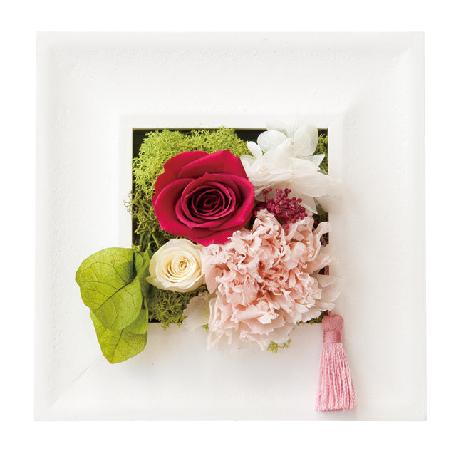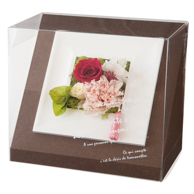 ◆ウッドフレームは油性塗料を使用しておりますので、プリザーブドフラワーが直接触れると使用している液が反応しウッドフレームが溶ける恐れがございます。取り扱いには十分ご注意ください。