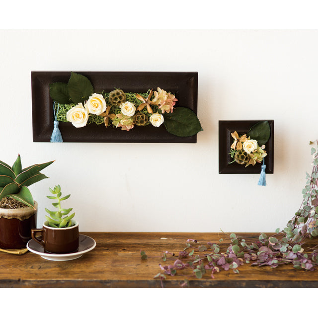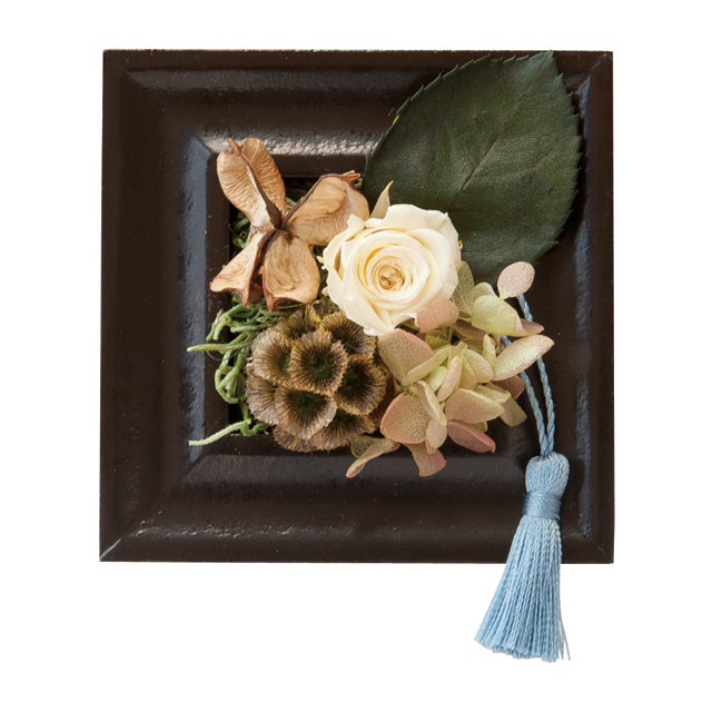 ◆ウッドフレームは油性塗料を使用しておりますので、プリザーブドフラワーが直接触れると使用している液が反応しウッドフレームが溶ける恐れがございます。取り扱いには十分ご注意ください。