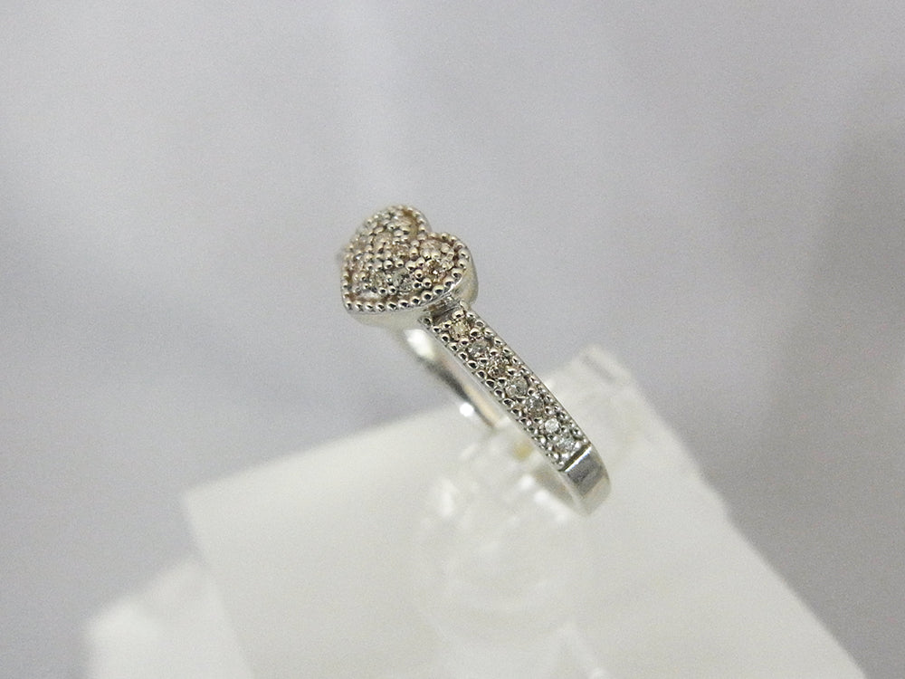 ハートモチーフのダイヤリング。 約2ミリ幅の細身でとっても可愛いリングです。